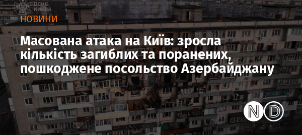 Президент України Володимир Зеленський розповів, що у столиці від уламків ракети «Іскандер» пошкоджене посольство Азербайджану.