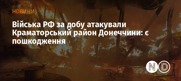 Краматорський район. У Лимані поранено людину, пошкоджено багатоповерхівку та авто. У Миколаївській громаді пошкоджено інфраструктурний об'єкт. У Краматорську поранено людину. У Черкаській громаді пошкоджено інфраструктуру.