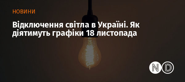 18 листопада у більшості регіонів України вживатимуться заходи щодо обмеження споживання електроенергії. Про це повідомили у пресслужбі «Укренерго».