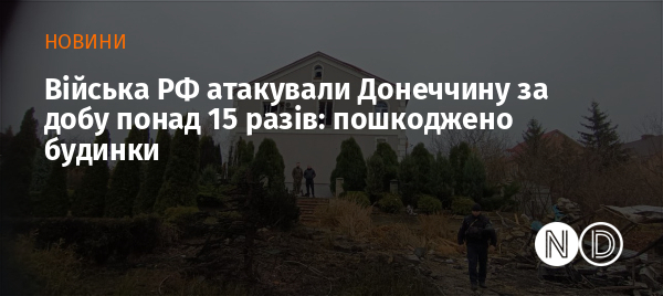 Російська армія минулої доби, 17 листопада, обстріляла низку населених пунктів Донецької області. Внаслідок ударів пошкоджено житлові будинки. Про це повідомив начальник Донецької обласної військової адміністрації Вадим Філашкін.