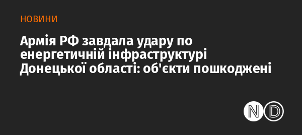 Війська Росії атакували енергетичну інфраструктуру Донецької області. Про це повідомили у пресслужбі Міністерства енергетики України.