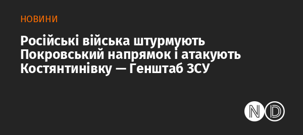 Російські війська найактивніше штурмують на Покровському та Костянтинівському напрямах, намагаються вклинюватися в оборону ЗСУ на Лиманському напрямі. Про це повідомляє Генштаб Збройних Сил України.
