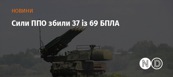 Станом на 09:00 протиповітряна оборона збила 37 БпЛА типу Shahed, Гербера та дронів інших типів на півночі, півдні та сході країни.