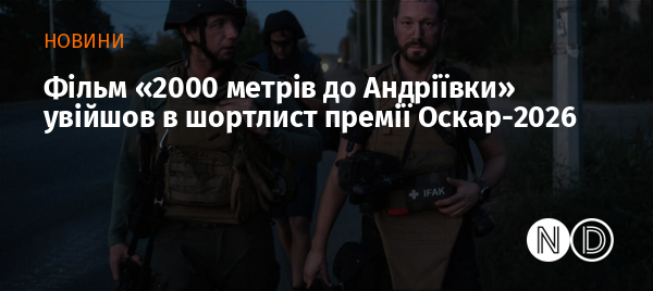 Український фільм режисера Мстислава Чернова «2000 метрів до Андріївки» потрапив у шорлист у категорії «Документальний повнометражний фільм». Про це повідомили на сайті премії.