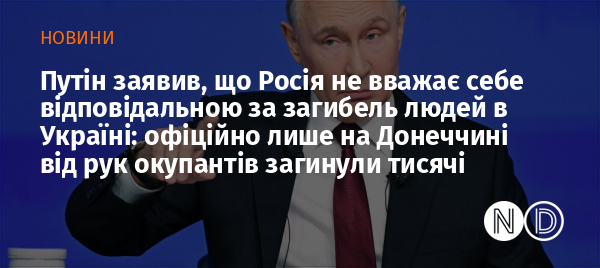 Росія не вважає себе відповідальною за загибель людей в Україні. Про це під час прямої лінії заявив голова Кремля Володимир Путін.