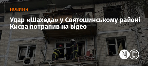 У Святошинському районі Києва російський дрон-камікадзе «Шахед» завдав удару по житловому кварталу — подія потрапила на відео. Кадри опублікували місцеві мешканці, які перебували на вулиці під час атаки.
