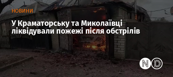 За минулу добу підрозділи ДСНС оперативно ліквідували три пожежі, що виникли внаслідок обстрілів житлових кварталів Краматорська та Миколаївки. Вогнем було знищено автомобіль, житловий будинок і гараж.