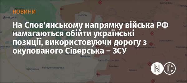 На Слов'янському напрямку російська армія застосовує тактику малих груп для інфільтрації у село Дронівка та намагається обійти українські позиції, використовуючи дорогу Сіверськ-Закітне. Про це повідомили у пресслужбі угруповання військ «Схід».