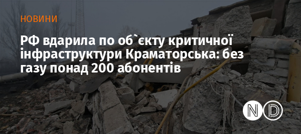 У Краматорську на Донеччині російські окупанти вночі 6 січня скинули авіаційну бомбу ФАБ-500 на об'єкт критичної інфраструктури. Внаслідок цього пошкоджено житлові будинки в прилеглому районі, понад 200 абонентів без газу. Про це повідомили у пресслужбі «Донецькоблгазу».
