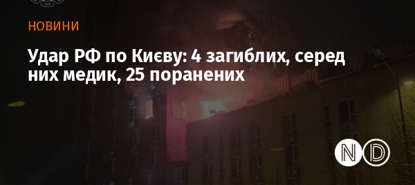 За попередніми даними, загинули чотири людини, ще 25 осіб дістали поранення. Серед загиблих — троє мешканців житлового комплексу у Дніпровському районі та 58-річний працівник екстреної медичної допомоги, який прибув на виклик у Дарницькому районі.