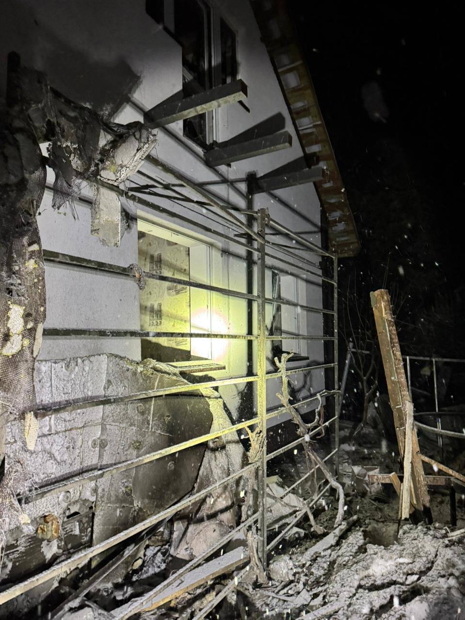 У Бориспільському районі пошкоджені три приватні будинки. Також уламки дрона впали на територію лікарні.