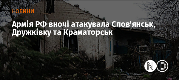 Сьогодні після опівночі, 10 січня, війська РФ завдали ударів по Дружківці, Краматорську та Слов'янську. Інформації щодо постраждалих не надходило.