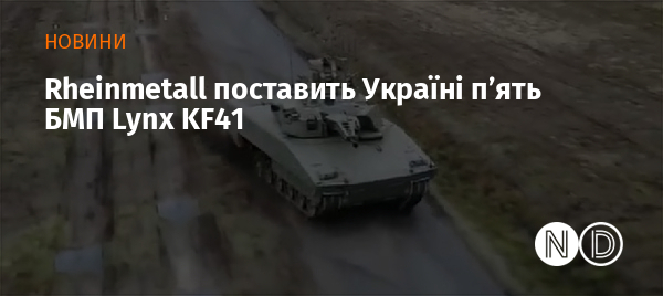 Німецький оборонний концерн Rheinmetall оголосив про постачання Україні п’яти бойових машин піхоти Lynx KF41. Передача техніки відбувається від імені уряду Німеччини, повідомляє проєкт German Aid to Ukraine.