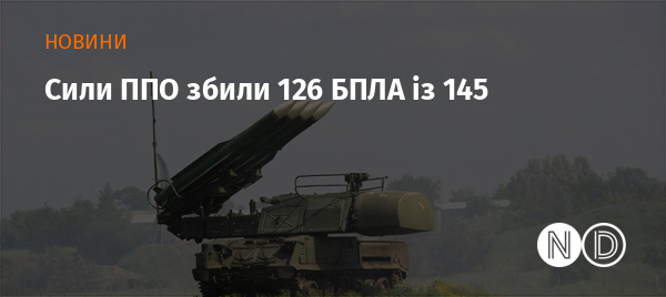 Станом на 08:30 протиповітряна оборона збила 126 ворожих БПЛА типу Shahed, Гербера та дронів інших типів.