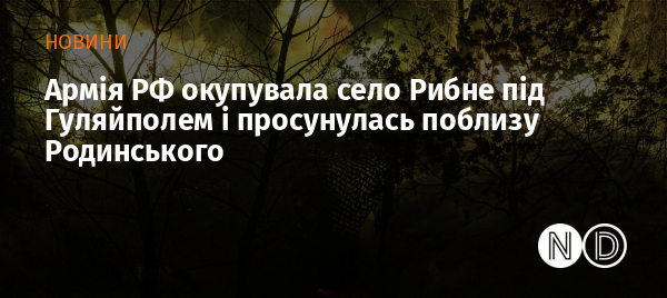 За даними аналітиків, російські війська повністю окупували село Рибне у Гуляйпільському районі Запорізької області.