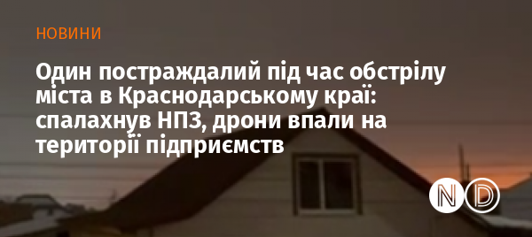 Крім того, фрагменти БПЛА впали на території двох підприємств, постраждала одна людина, її госпіталізували. Також на території підприємств сталися спалахи.