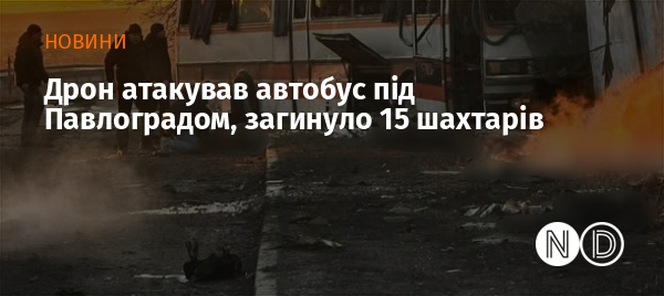 У Павлоградському районі Дніпропетровської області внаслідок атаки російського безпілотника загинули 15 людей, ще семеро отримали поранення. Удар припав поруч із службовим автобусом ДТЕК «Павлоградвугілля», який перевозив шахтарів на зміну.