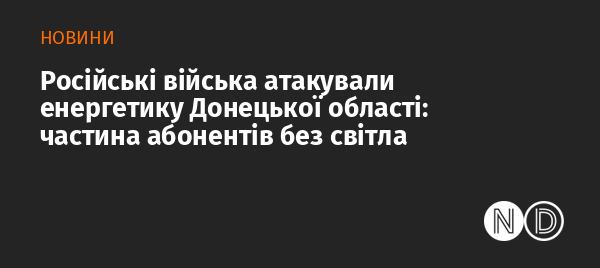 Армія РФ обстріляла енергетичну інфраструктуру у Донецькій області. Про це повідомили у прес-службі «Укренерго».