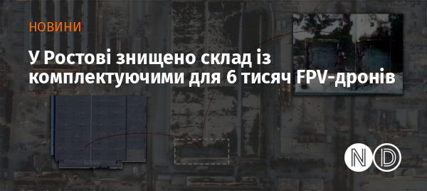 OSINT-аналітики спільноти «КіберБорошно» підтвердили ураження логістичного пункту в промисловій зоні міста Ростов-на-Дону у ніч з 13 на 14 січня. За попередніми оцінками, внаслідок удару було знищено комплектуючі для близько шести тисяч FPV-дронів.