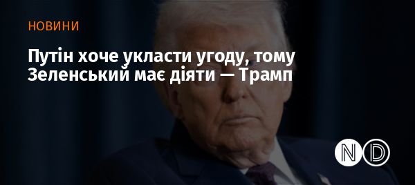 Президент США Дональд Трамп заявив, що Росія нібито хоче укласти мирну угоду з Україною. За словами голови Білого дому, українському лідеру «доведеться діяти». Про це повідомив Трамп під час розмови із журналістами, передають американські ЗМІ.