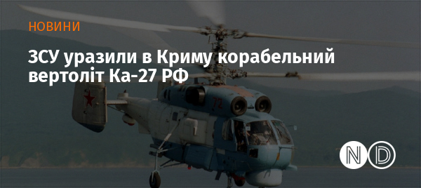 Підрозділи Сил оборони України уразили російський корабельний багатофункціональний вертоліт Ка-27 на тимчасово окупованій території Криму. Про це повідомив Генеральний штаб ЗСУ.