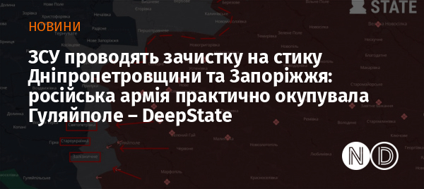 Сили оборони України продовжують проводити зачистку на стику Дніпропетровської та Запорізької областей. Про це повідомили аналітики DeepState.