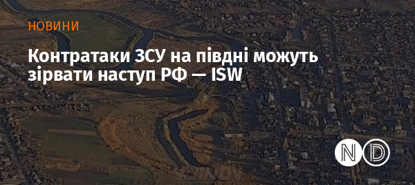 Українські сили оборони проводять серію контратак у Запорізькій області, що суттєво ускладнює реалізацію російських планів наступу на півдні України. Про це свідчить нова оцінка ситуації на фронті, оприлюднена аналітиками Інституту вивчення війни (ISW).