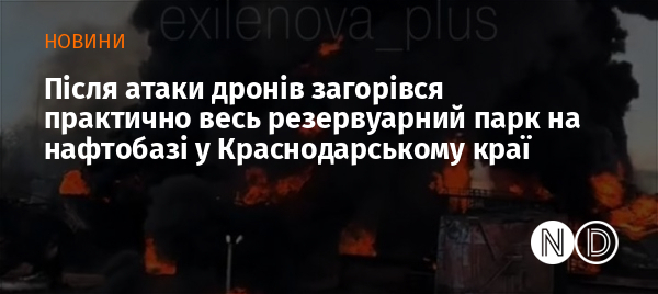 Наслідки атаки на нафтобазу у Лабінську. Фото: Exilenova+
