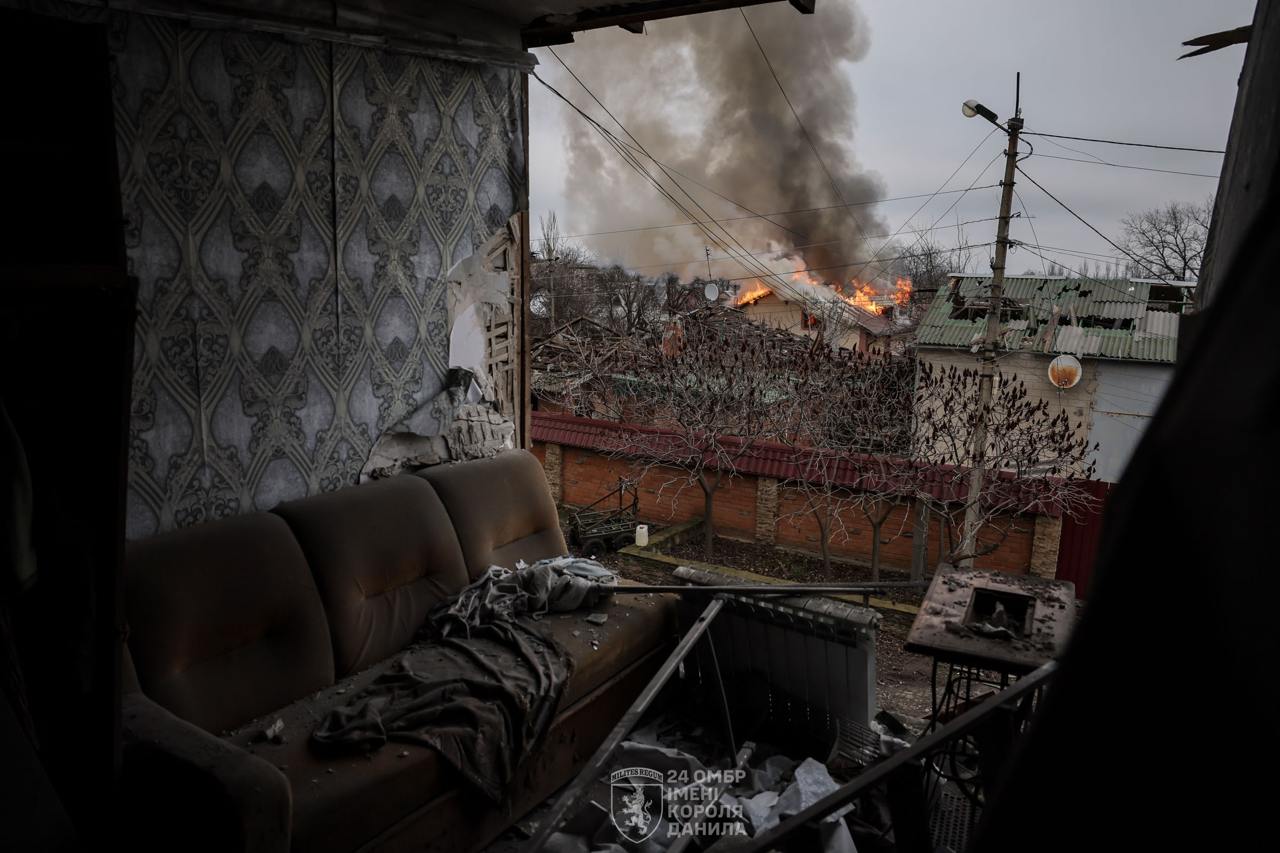 «Від деяких будівель залишилися лише фундаменти. Ворожі FPV полюють на людей та транспорт. Вони вистежують автомобілі та атакують усе, що рухається – як військових, так і цивільних. Евакуація місцевих жителів майже неможлива. Противник прострілює під'їзні шляхи до міста, а через постійні удари окупантів все складніше завезти навіть гуманітарну допомогу. Наразі воїни 24-ї бригади тримають оборону у Часовому Яру – на східних підступах до Костянтинівки, стримуючи просування російських військ у бік міста», – зазначили у 24-й ОМБр.
