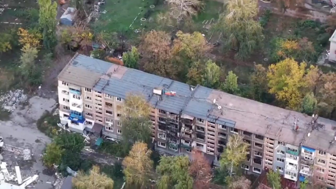 Разрушенный Покровск с высоты. Скрин из видео пропагандистов РФ.