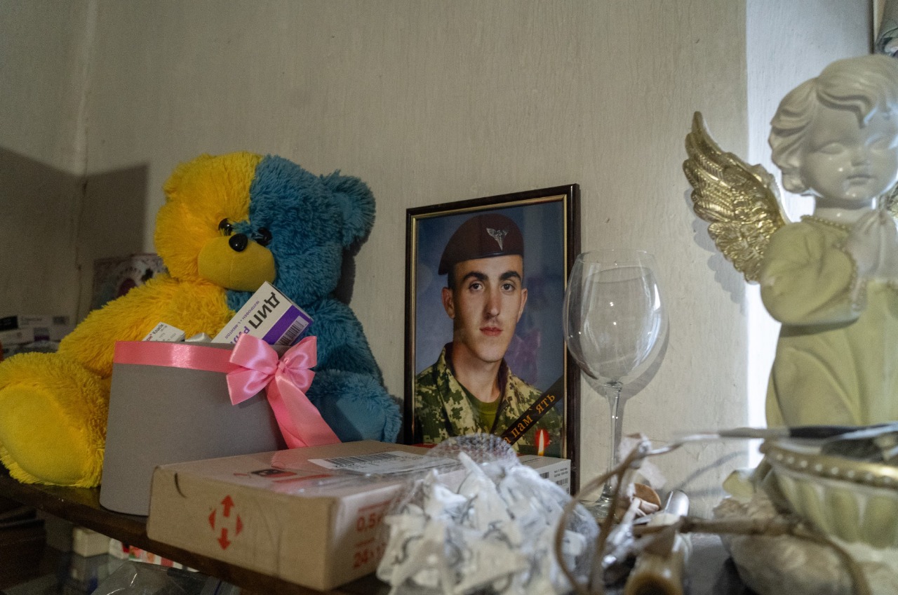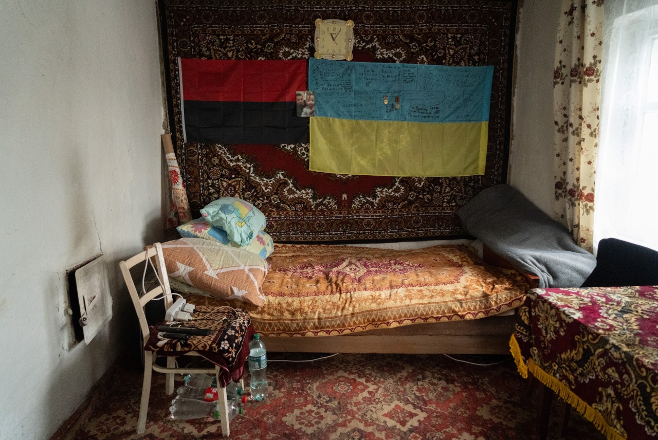 С Ольгой из Гуляйполя, мамой десятерых детей, мы сидим на ее кровати в маленькой комнате, где на стене напротив висит огромный баннер с фото ее сына, погибшего на фронте. Ольга рассказывает, что похоронен сын в Днепропетровской области, потому что там как раз Ольга была в эвакуации, а если россияне придут и туда, что же будет с его могилой?