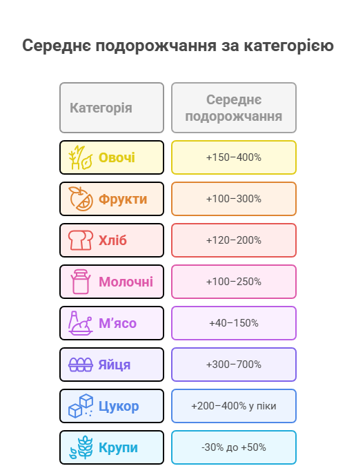 Рост цен в России и на оккупированных территориях Украины — системный, а не разовый. С 2023 по 2025 год подорожали почти все виды продуктов, в большинстве случаев — на десятки процентов.