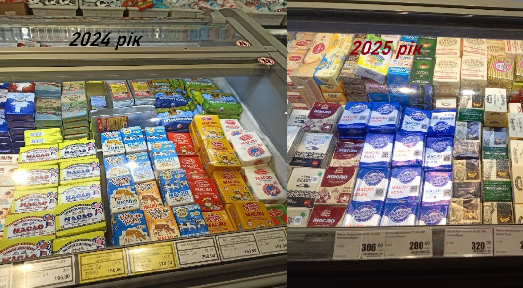 Зимой 2024 года оккупанты предлагали жителям фальсификат по завышенным ценам: на прилавках появлялись подсолнечное масло, курятина, кондитерские изделия и даже туалетная бумага с украинскими этикетками, но российского производства.