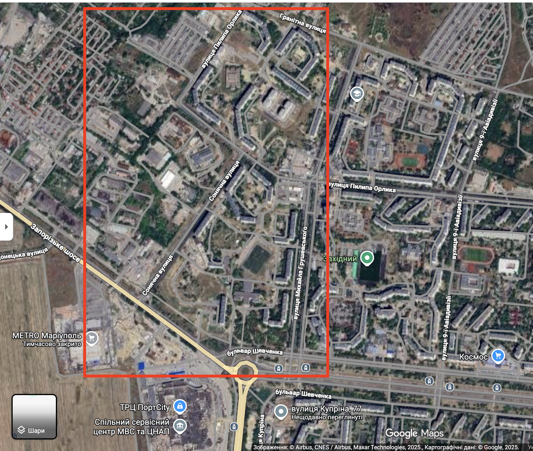 Чаще всего компании-застройщики в Мариуполе получают участки недалеко друг от друга. Среди таких «Олимпстрой НР». 16 июня она опубликовала проект многоэтажного дома на улице Куприна, 77Б — здесь снова к адресу добавилась буква, которой ранее не было. Дом на Куприна, 77 снесли еще в 2023 году.