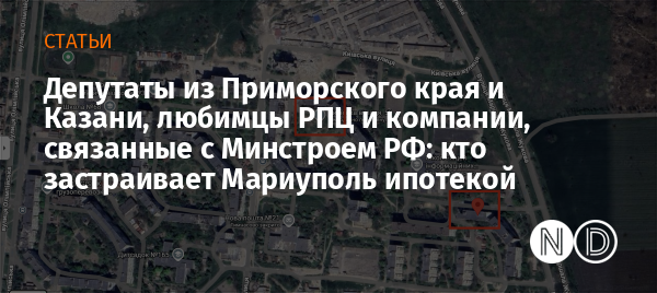 В ноябре этого года глава группировки «ДНР» Денис Пушилин передал около 30-ти тысяч квадратных метров земли в центре Мариуполя компании «Порфир». Теперь на месте снесенных домов 74, 76, 78, 80 и 88 на проспекте Строителей появятся новые многоэтажки.