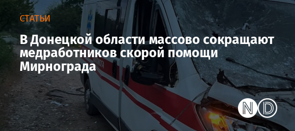 До 1 апреля в Новодонецкой громаде будут сокращены свыше сорока работников станции скорой медицинской помощи города Мирноград.
