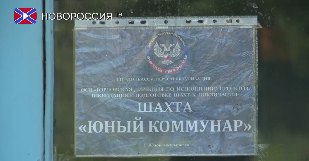 Табличка на шахте Юнный коммунар в Донецкой области. Скрин из видео "Новороссия ТВ"