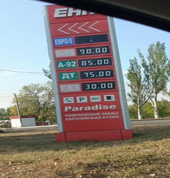 «Топливо продают только по талонам, которые дают только военным. Гражданские едут покупать в Мелитополь. Соседи сказали, что там в наличии был только А95 и покупали они его на разных заправках по разным ценам от 80 до 100 руб/л», — рассказывают местные.