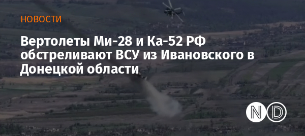 Подконтрольное россиянам село Ивановское в Донецкой области стало огневой позицией для удара с воздуха. Оттуда пара ударных вертолетов РФ — Ми-28 и Ка-52 совершают атаки по позициям ВСУ.