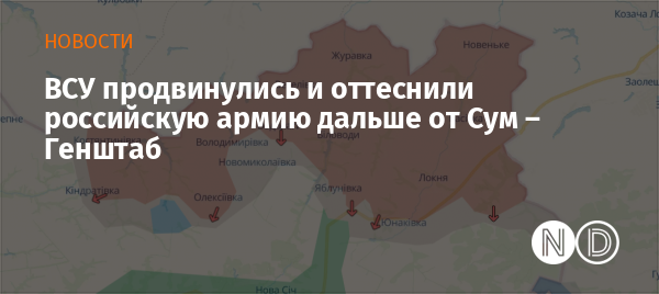 «Наши войска держат оборону по определенному рубежу, проводят мероприятия по подготовке и осуществлению контрнаступательных действий для вытеснения противника. Так, в результате успешных действий украинских воинов освобожден населенный пункт Андреевка. Кроме того, наши подразделения продвинулись вблизи Алексеевки, оттеснив противника дальше от Сум. Российский агрессор задействует на этом направлении свои лучшие бригады – морскую пехоту, десантно-штурмовые части, наиболее боеспособные части мотострелковых войск. Активно использует дальнобойную артиллерию, авиацию и ударные дроны», – рассказали в Генштабе.