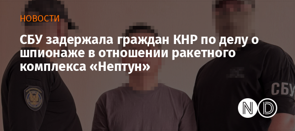 Контрразведка Службы безопасности Украины задержала в Киеве двух граждан Китайской Народной Республики, которых подозревают в попытке незаконного получения и вывозки секретных технологических данных о ракетном комплексе РК-360МЦ «Нептун».