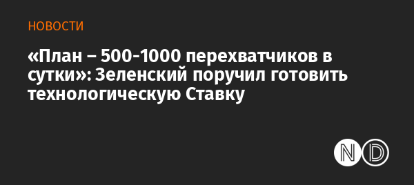 Президент Украины Владимир Зеленский поручил готовить технологическую Ставку по дронам. Главная цель — выйти на количество 500–1000 перехватчиков в сутки. Об этом Зеленский заявил в вечернем обращении.