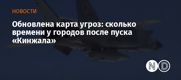 Карта времени подлета ракеты Х-47М2 «Кинжал» к городам Украины при пуске с Тамбовской области. Источник: AviVector