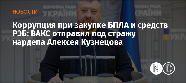 Высший антикоррупционный суд назначил меру пресечения народному депутату Алексею Кузнецову, который является одним из подозреваемых по делу о коррупции при закупке БПЛА и средств РЭБ. Об этом передает пресс-службе Специализированной антикоррупционной прокуратуры и корреспондент издания «Суспільне».