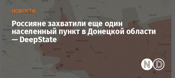 Согласно карте DeepState, село Затышок Покровского района Донецкой области перешло под контроль российских оккупантов