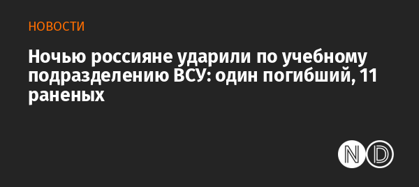 Один военный погиб, еще 11 ранены в результате ночного удара ВС РФ по территории одного из учебных подразделений Сухопутных войск ВСУ. Об этом сегодня утром сообщила пресс-служба Сухопутных войск ВСУ.