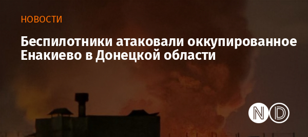Вечером 14 августа беспилотники атаковали временно оккупированный город Енакиево в Донецкой области, где в результате обстрела вспыхнул сильный пожар.
