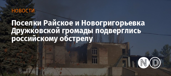 Ночью российские оккупационные войска обстреляли поселки Райское и Новогригорьевка Дружковской громады Краматорского района Донецкой области.