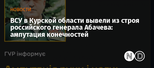 Главное управление разведки Украины сообщило о тяжелом ранении генерала российских оккупационных войск Абачева.