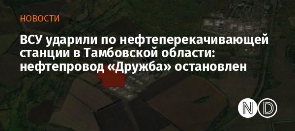 В ночь на 18 августа подразделения Сил беспилотных систем ВСУ во взаимодействии с другими составляющими Сил обороны Украины нанесли удар по нефтеперекачивающей станции «Никольское» в Тамбовской области РФ. Об этом сообщили в пресс-службе Генерального штаба ВСУ.